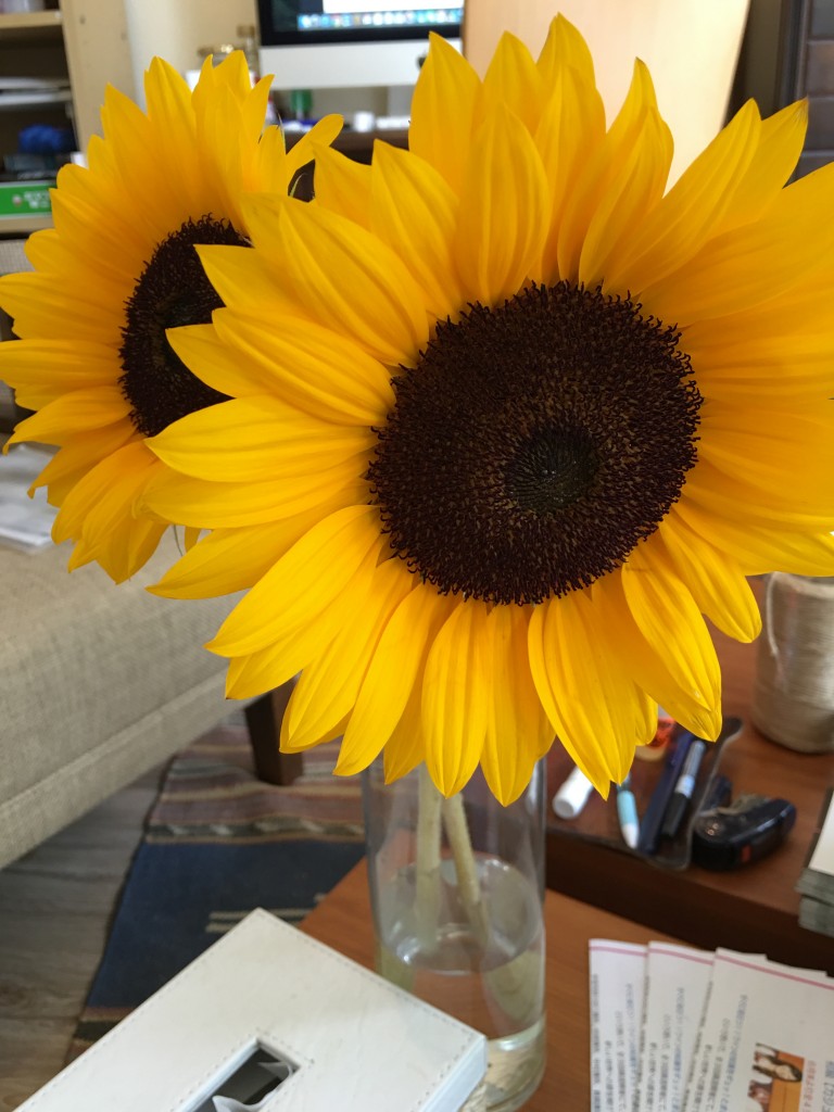 いろんなひまわりが出回りますが、私はこの中が茶色い大輪のひまわりが好きです。