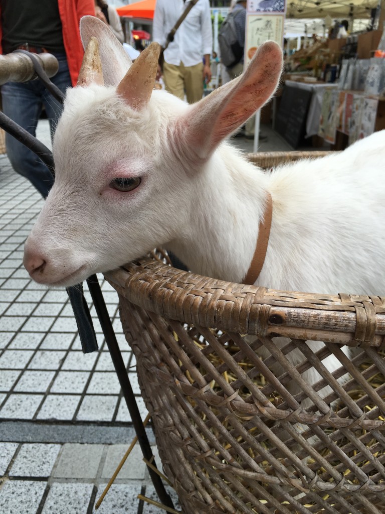 ヤギのミルクからパンやフェタチーズを作っているPURUCODEさんというお店が出ていたのですが、そこのヤギさんみたいで、写真大会になっていました(笑)