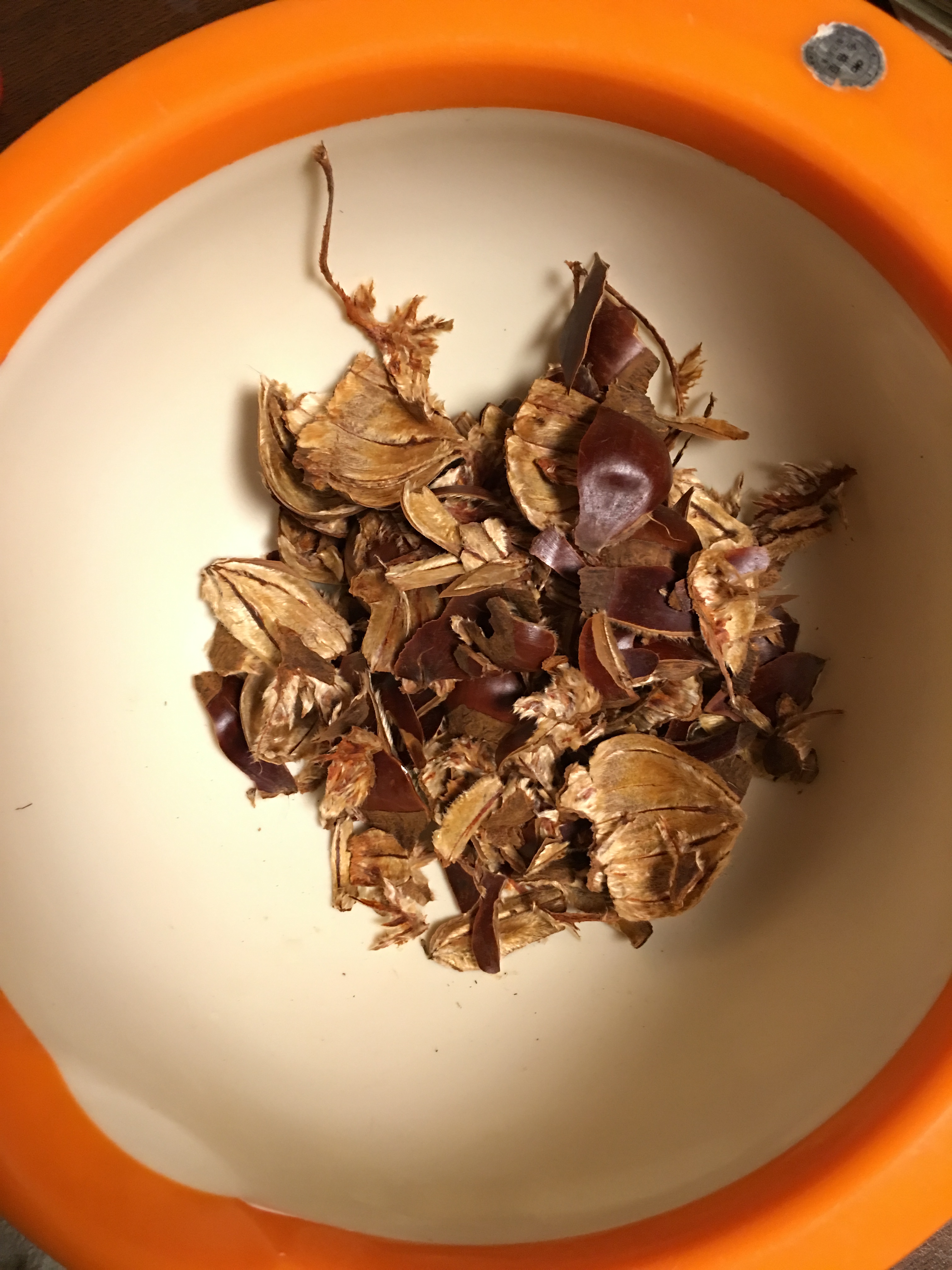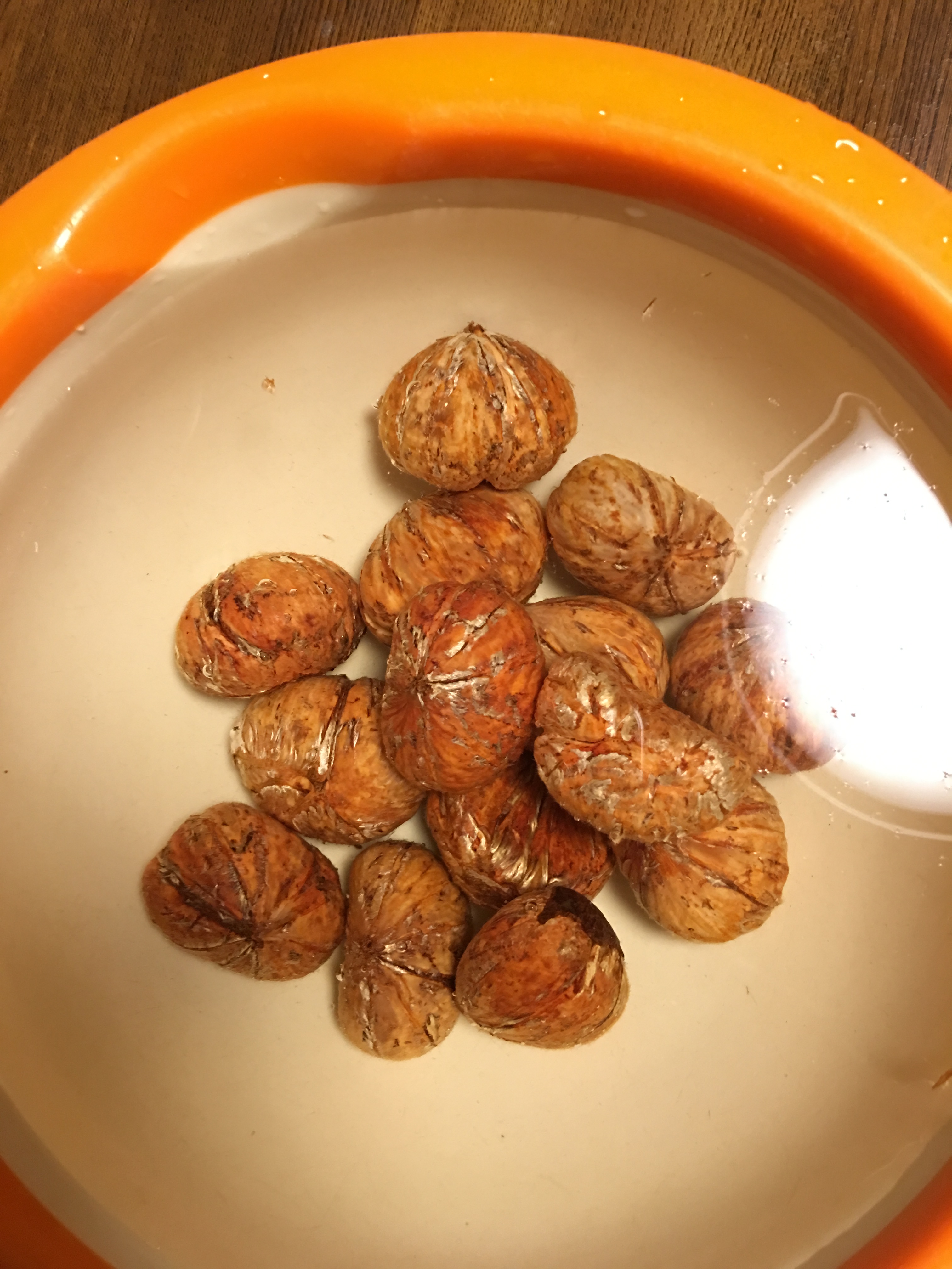 まずはこれの鬼皮(外の硬い皮)を剥いていきます。