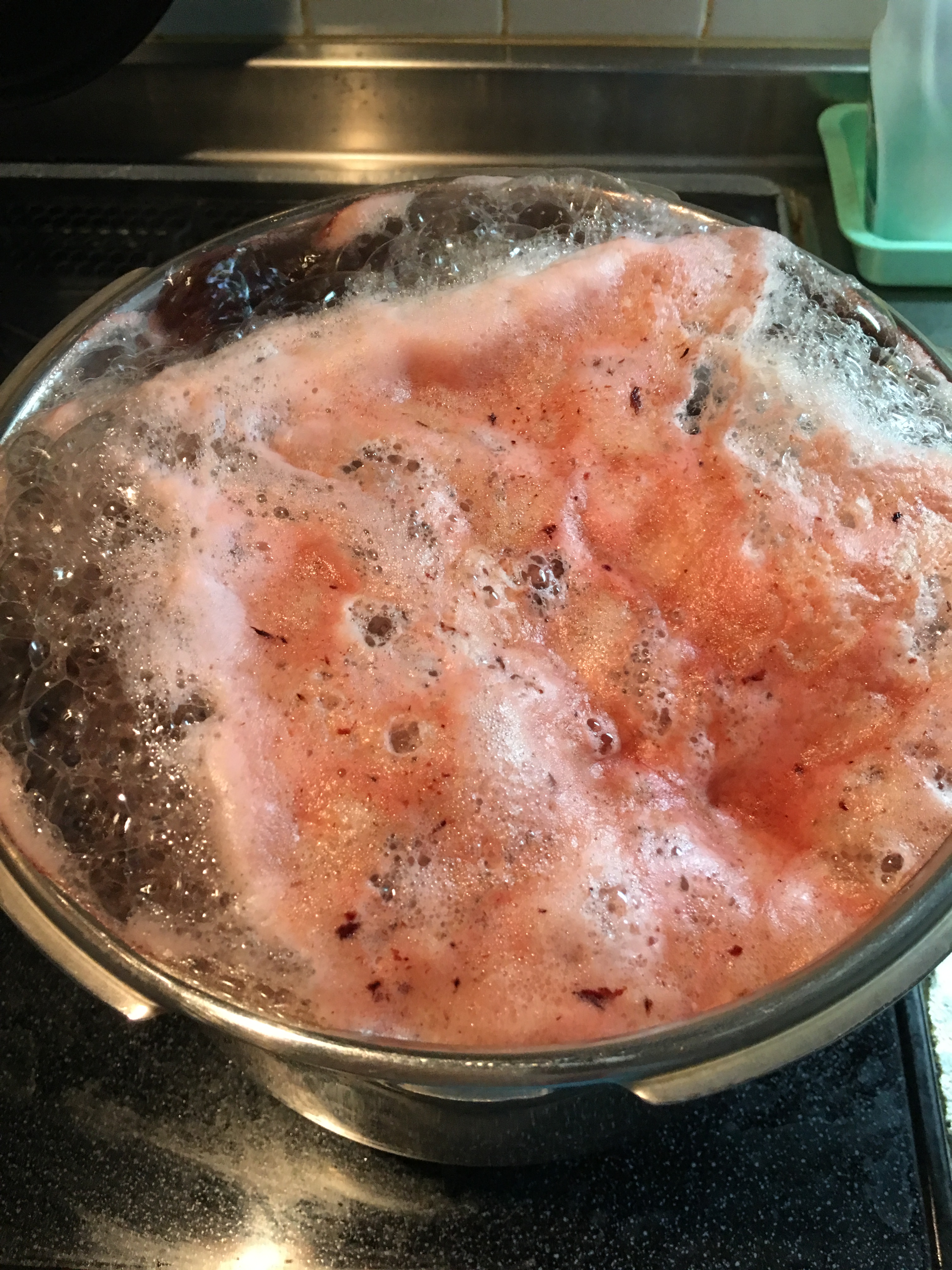 砂糖を入れて1時間煮込み、一晩寝かせます。